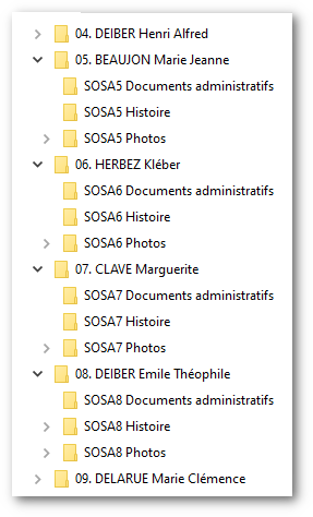 Après réflexion, j’ai opté pour un classeur contenant des pochettes transparentes perforées, classées par numéro SOSA avec les actes concernant la personne ; cette méthode me semble la plus simple, d’autant plus qu’elle peut s’agrandir à souhait.
